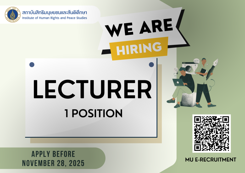 Apply Before November 28, 2025. Please submit an application form along e-Recruitment online at https://muhr.mahidol.ac.th/E-Recruitment/user/job/view.php?id=12848