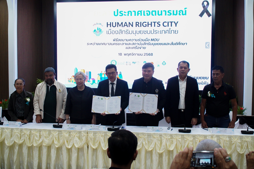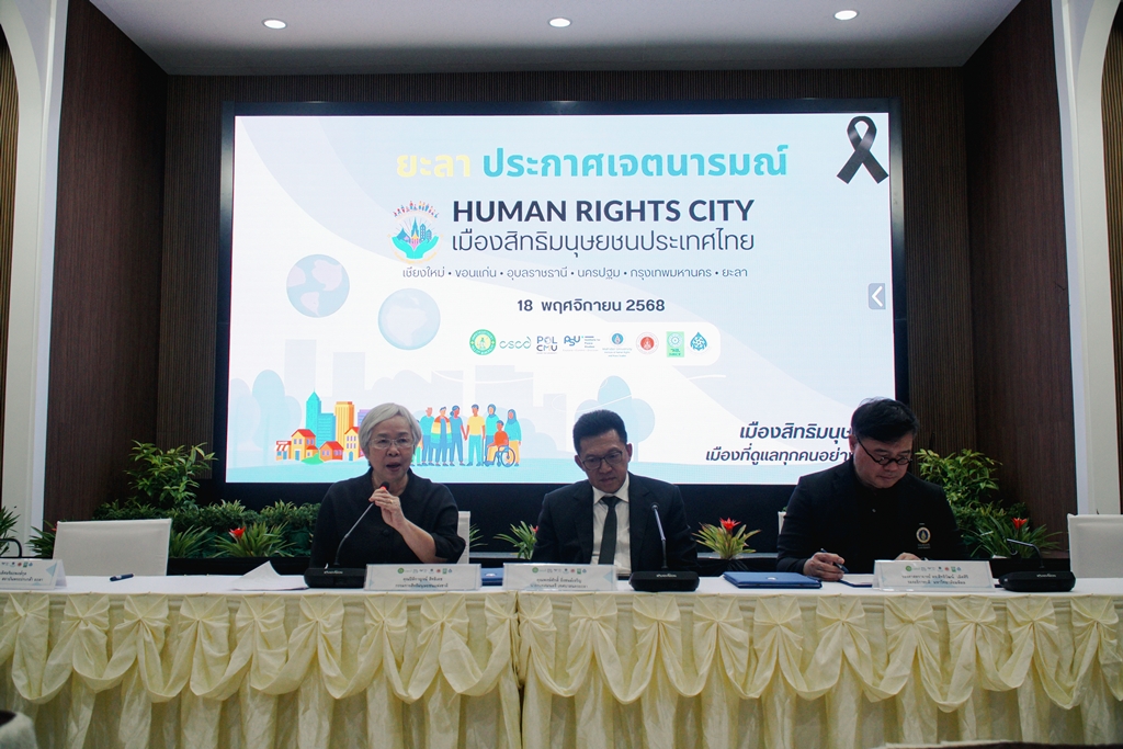 On 18 November 2025, the Institute of Human Rights and Peace Studies (IHRP), Mahidol University, in collaboration with Yala Municipality, held an academic forum titled “Declaration of Commitment to Developing a Human Rights City” at the Yala Municipality Conference Hall. The event marked the official launch of the Human Rights City project in Yala and reaffirmed cross-sectoral cooperation in the province to localize international human rights standards within municipal governance—ensuring equitable and inclusive quality of life for all residents. The forum also highlighted the role of Mahidol University in contributing to the development of a Human Rights City for people of all ages.